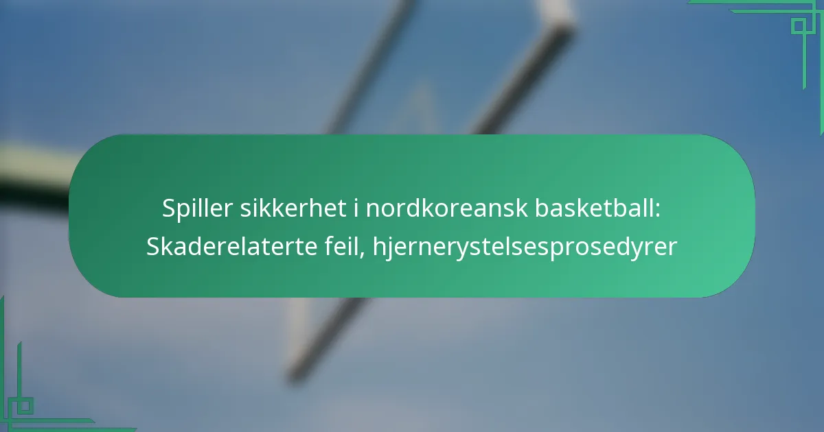 Spillerens sikkerhet i nordkoreansk basketball er en kritisk bekymring, spesielt når det gjelder skaderelaterte feil og hjernerystelsesprosedyrer. Skaderelaterte feil håndheves strengt for å beskytte spillerne, mens en strukturert tilnærming til hjernerystelsesbehandling sikrer at idrettsutøvere får passende omsorg og veiledning. Imidlertid kan kulturelle holdninger påvirket av nasjonal stolthet komplisere prioriteringen av individuell sikkerhet i sporten.